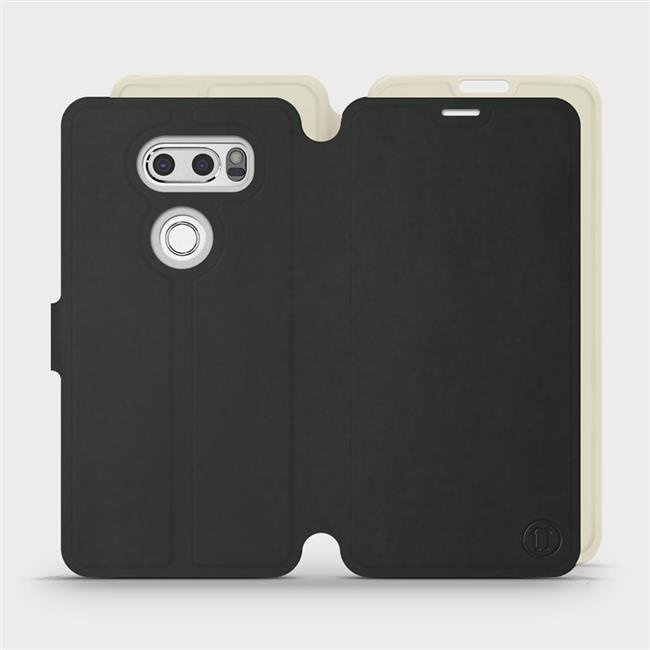 • Hülle mit Klappe von Mobiwear, hergestellt in Polen. Hülle für LG V30 - Farbe Schwarz mit Platin