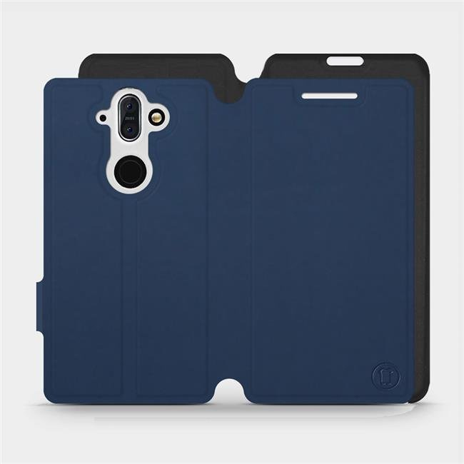- Hülle mit Klappe von Mobiwear, hergestellt in Polen. Hülle für Nokia 8 Sirocco - Farbe Marine mit Schwarz