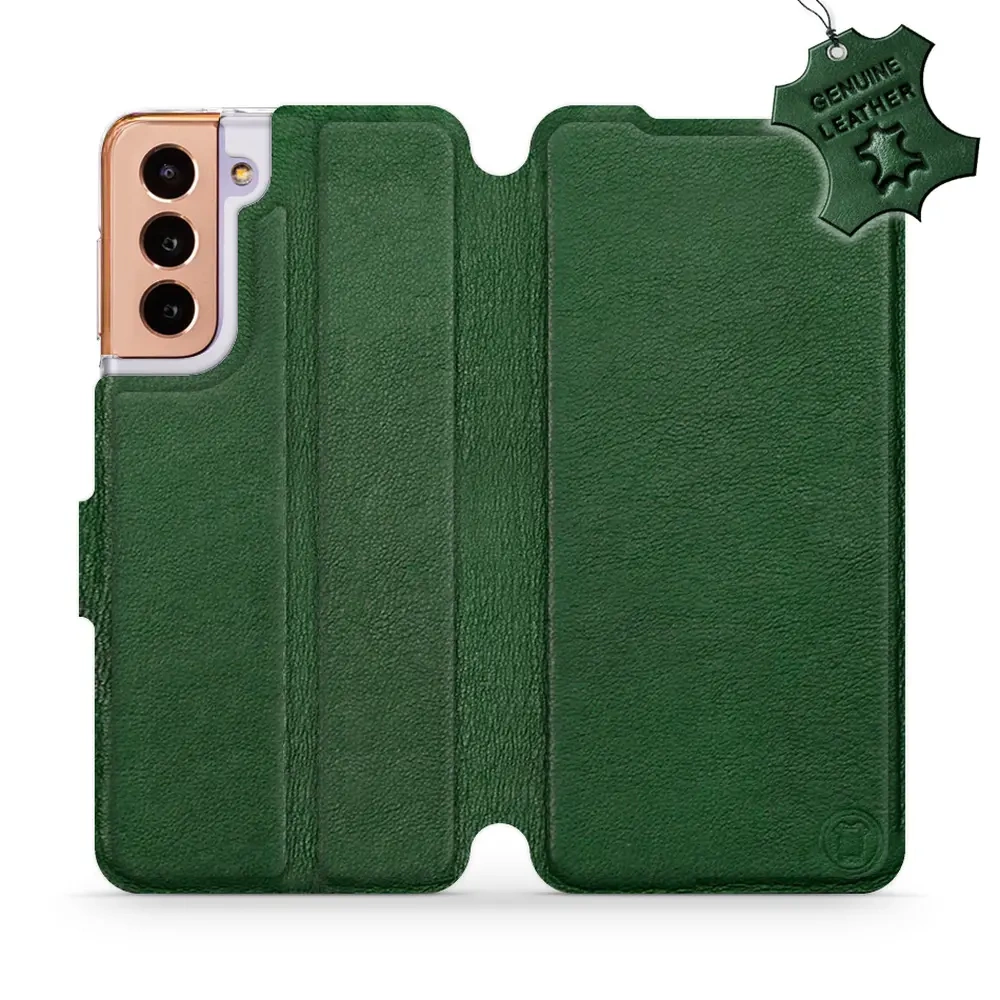 - Hülle mit Klappe von Mobiwear, hergestellt in Polen. Hülle für Samsung Galaxy S21 - Farbe Green Leather