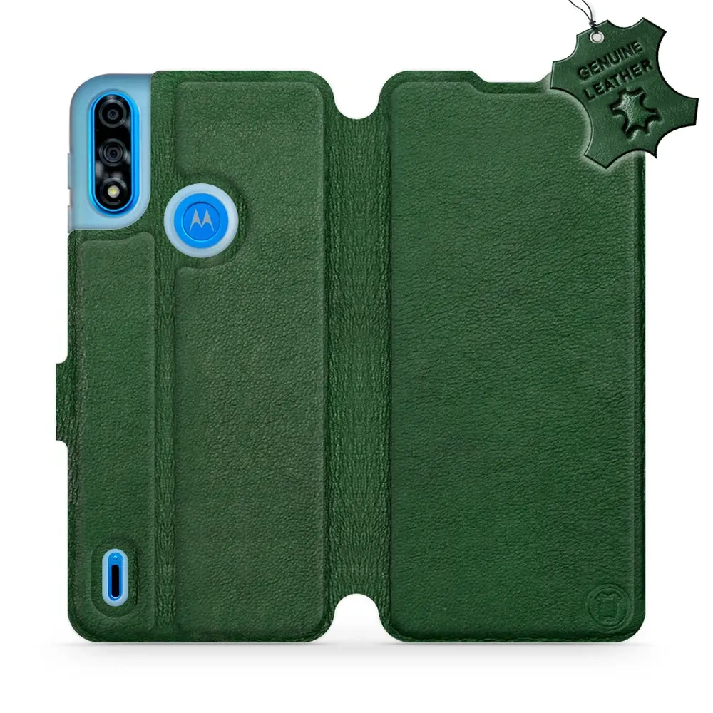 - Hülle mit Klappe von Mobiwear, hergestellt in Polen. Hülle für Motorola Moto E7i Power - Farbe Green Leather
