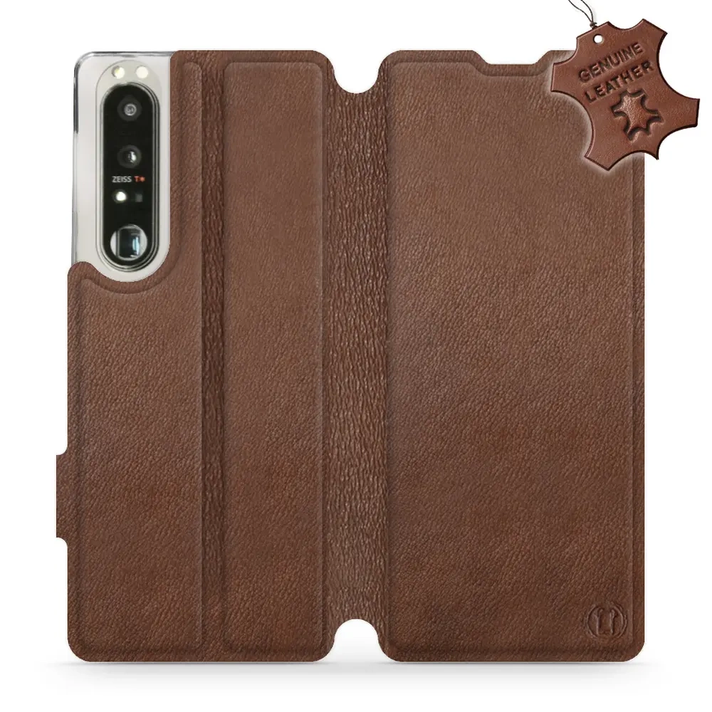 - Hülle mit Klappe von Mobiwear, hergestellt in Polen. Hülle für Sony Xperia 1 III - Farbe Brown Leather