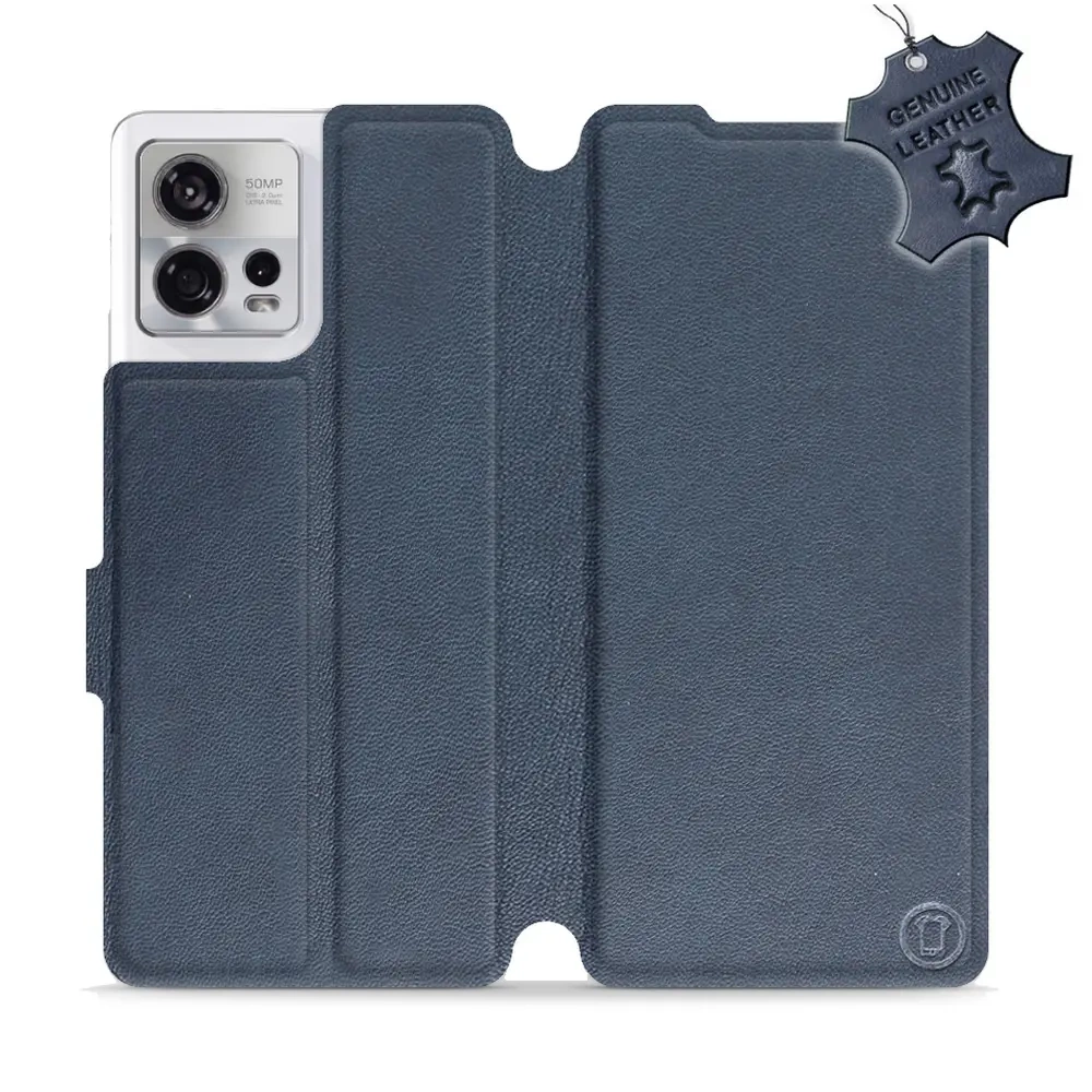 - Hülle mit Klappe von Mobiwear, hergestellt in Polen. Hülle für Motorola Edge 30 Fusion - Farbe Blue Leather