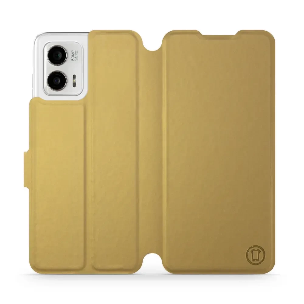 • Hülle mit Klappe von Mobiwear, hergestellt in Polen. Hülle für Motorola Moto G73 5G - Farbe Gold&Gray
