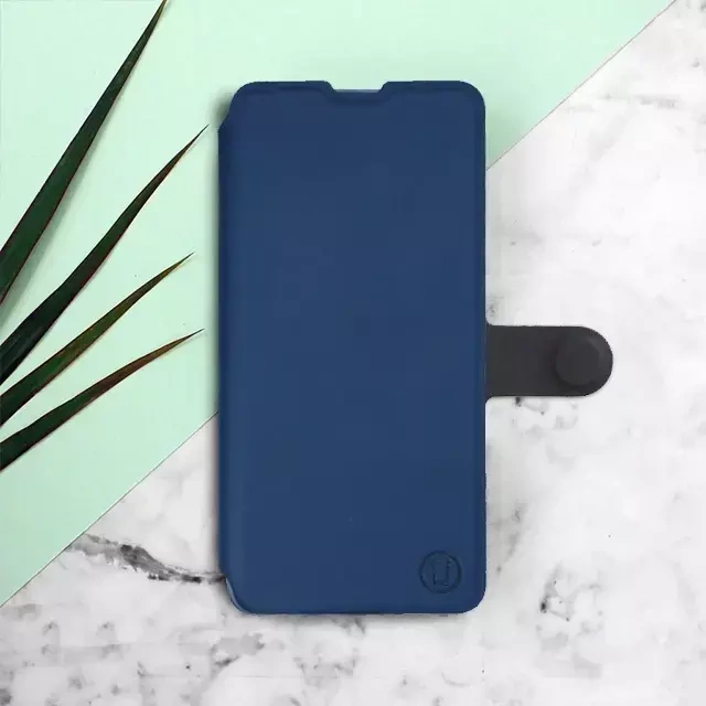 - Hülle mit Klappe von Mobiwear, hergestellt in Polen. Hülle für OPPO Reno 8T 5G - Farbe Marine mit Schwarz