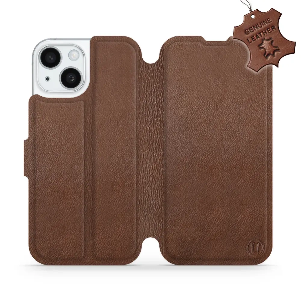 - Hülle mit Klappe von Mobiwear, hergestellt in Polen. Hülle für Apple iPhone 15 - Farbe Brown Leather