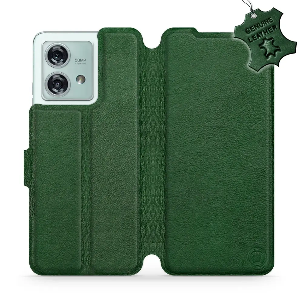 - Hülle mit Klappe von Mobiwear, hergestellt in Polen. Hülle für Motorola Edge 40 Neo - Farbe Green Leather