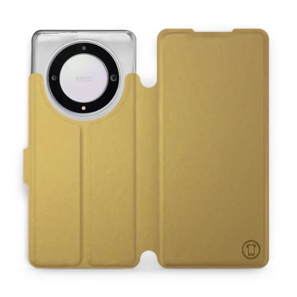 - Hülle mit Klappe von Mobiwear, hergestellt in Polen. Hülle für Huawei Honor Magic5 Lite 5G - Farbe Gold&Gray