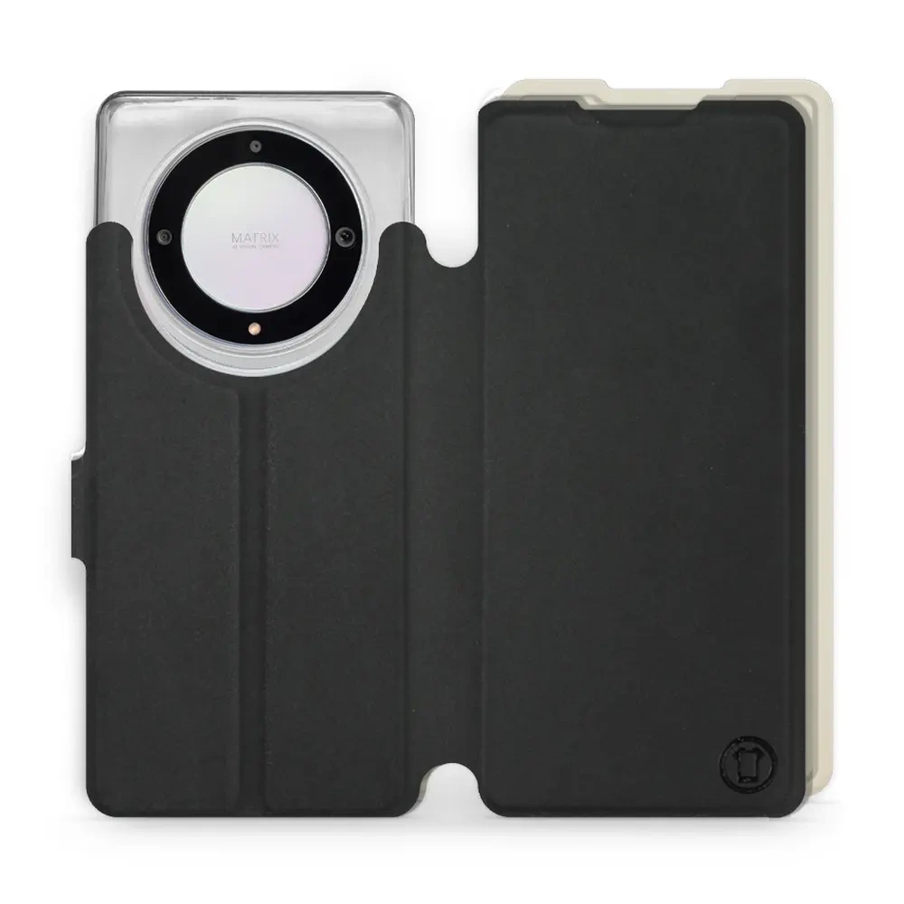 - Hülle mit Klappe von Mobiwear, hergestellt in Polen. Hülle für Huawei Honor Magic5 Lite 5G - Farbe Schwarz mit Platin