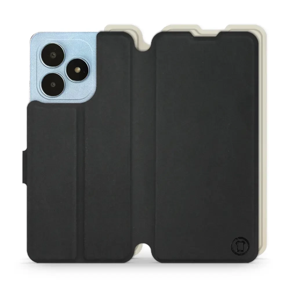 - Hülle mit Klappe von Mobiwear, hergestellt in Polen. Hülle für Realme Note 50 - Farbe Schwarz mit Platin