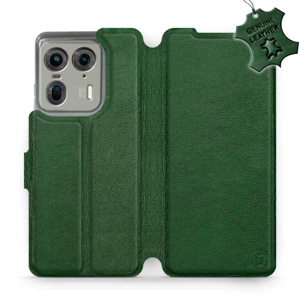 - Hülle mit Klappe von Mobiwear, hergestellt in Polen. Hülle für Motorola Edge 50 Ultra - Farbe Green Leather