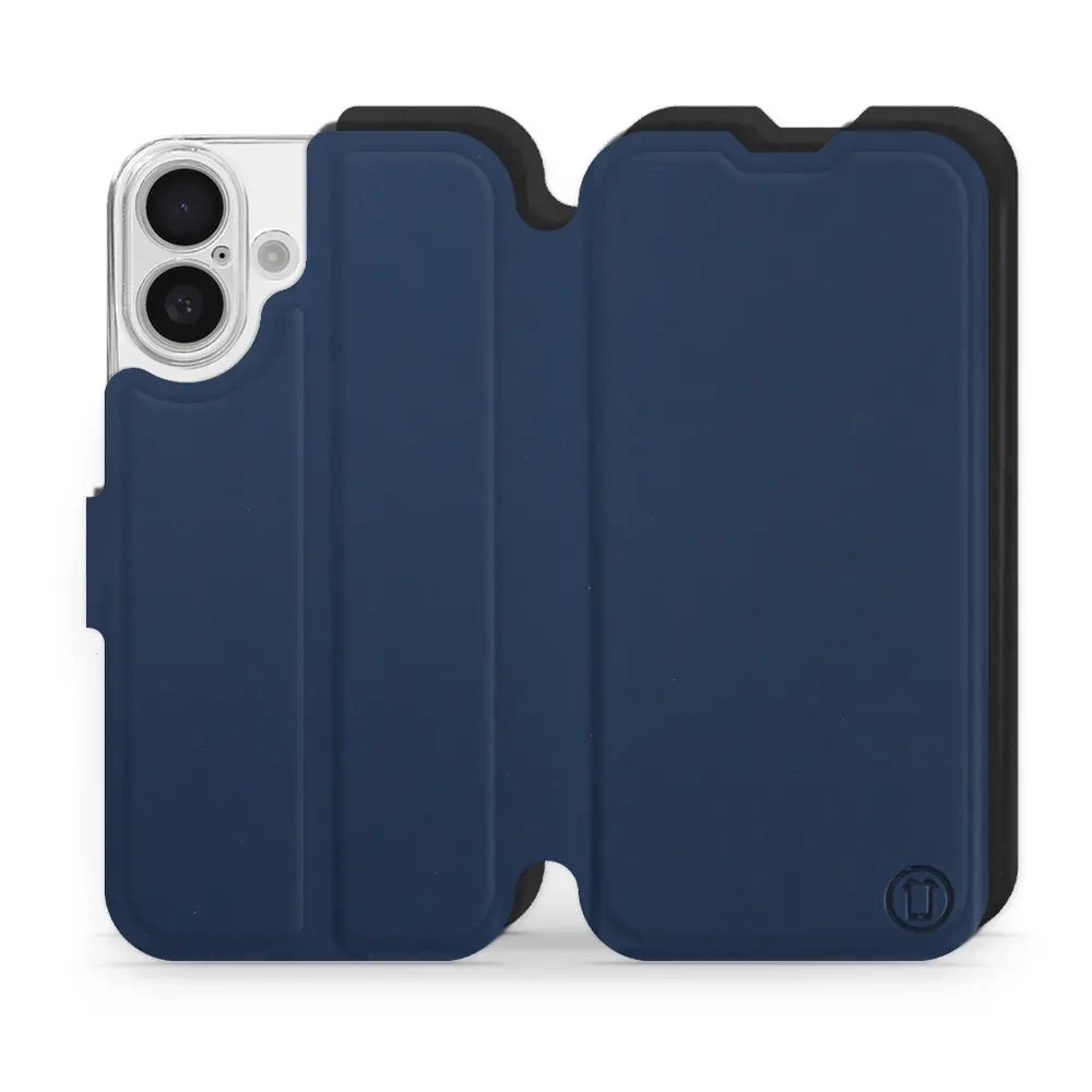 - Hülle mit Klappe von Mobiwear, hergestellt in Polen. Hülle für Apple iPhone 16 - Farbe Marine mit Schwarz