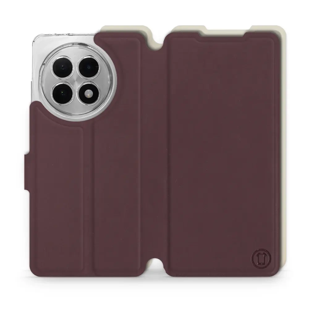 - Hülle mit Klappe von Mobiwear, hergestellt in Polen. Hülle für OnePlus 13R - Farbe Burgund mit Platin