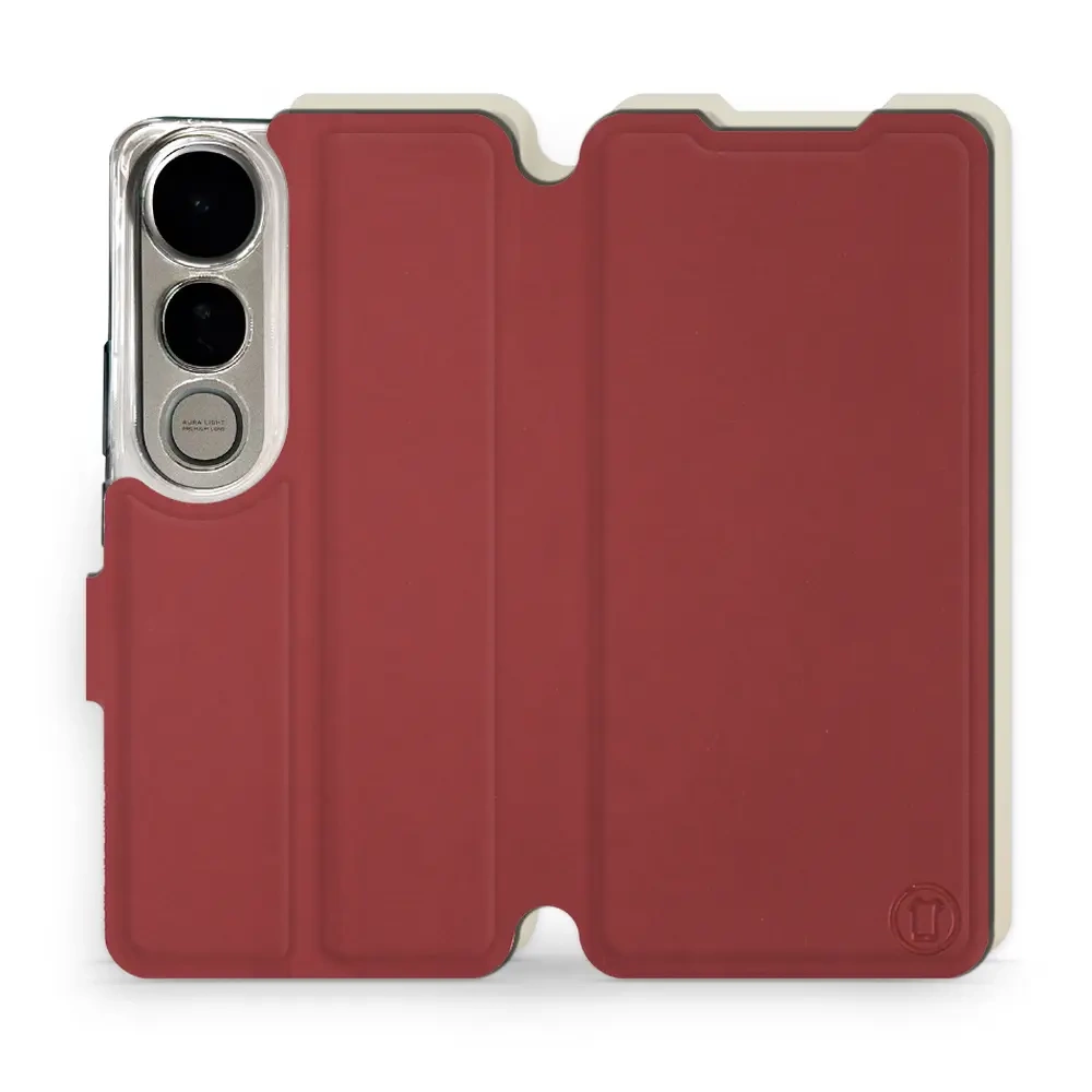 - Hülle mit Klappe von Mobiwear, hergestellt in Polen. Hülle für Vivo V50 Lite - Farbe Dunkelrot mit Platin