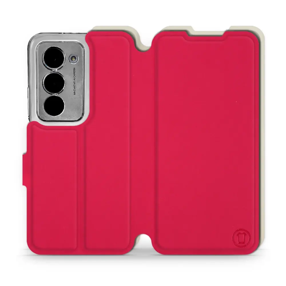- Hülle mit Klappe von Mobiwear, hergestellt in Polen. Hülle für Xiaomi Redmi 15 5G - Farbe Rot mit Platin