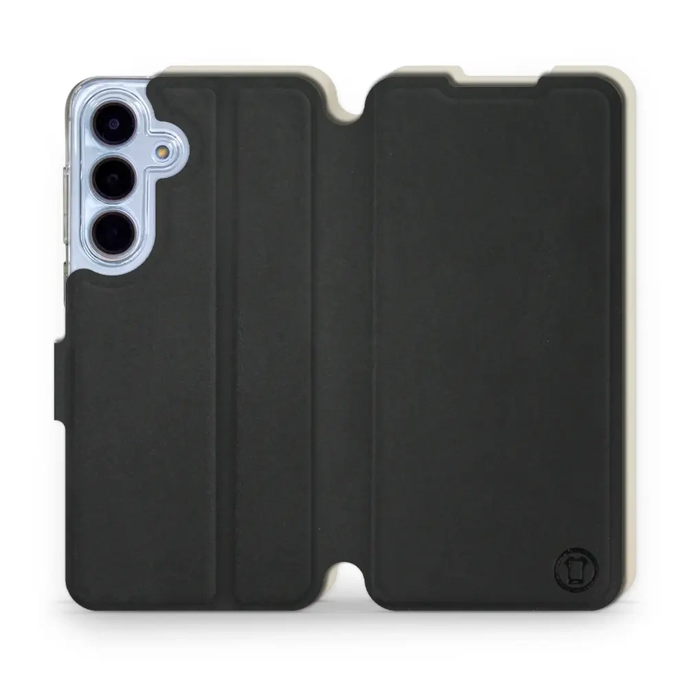 - Hülle mit Klappe von Mobiwear, hergestellt in Polen. Hülle für Samsung Galaxy S25 FE 5G - Farbe Schwarz mit Platin