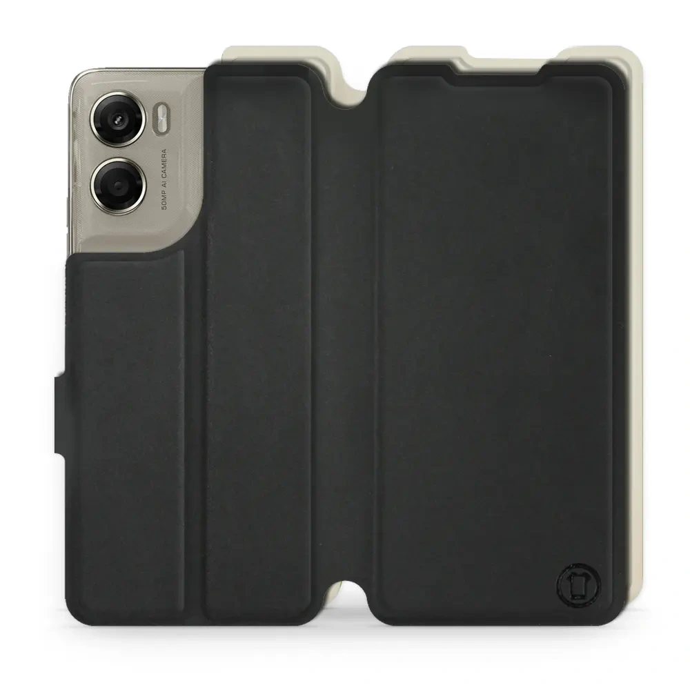 - Hülle mit Klappe von Mobiwear, hergestellt in Polen. Hülle für Motorola Moto G06 Power - Farbe Schwarz mit Platin