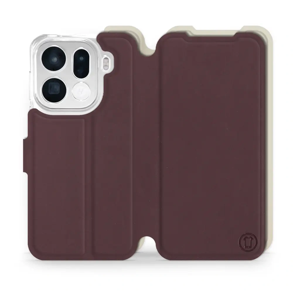 - Hülle mit Klappe von Mobiwear, hergestellt in Polen. Hülle für OPPO Find X9 pro - Farbe Burgund mit Platin