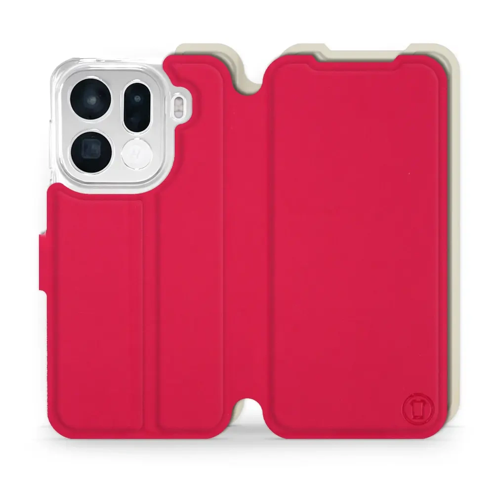 • Hülle mit Klappe von Mobiwear, hergestellt in Polen. Hülle für OPPO Find X9 pro - Farbe Rot mit Platin