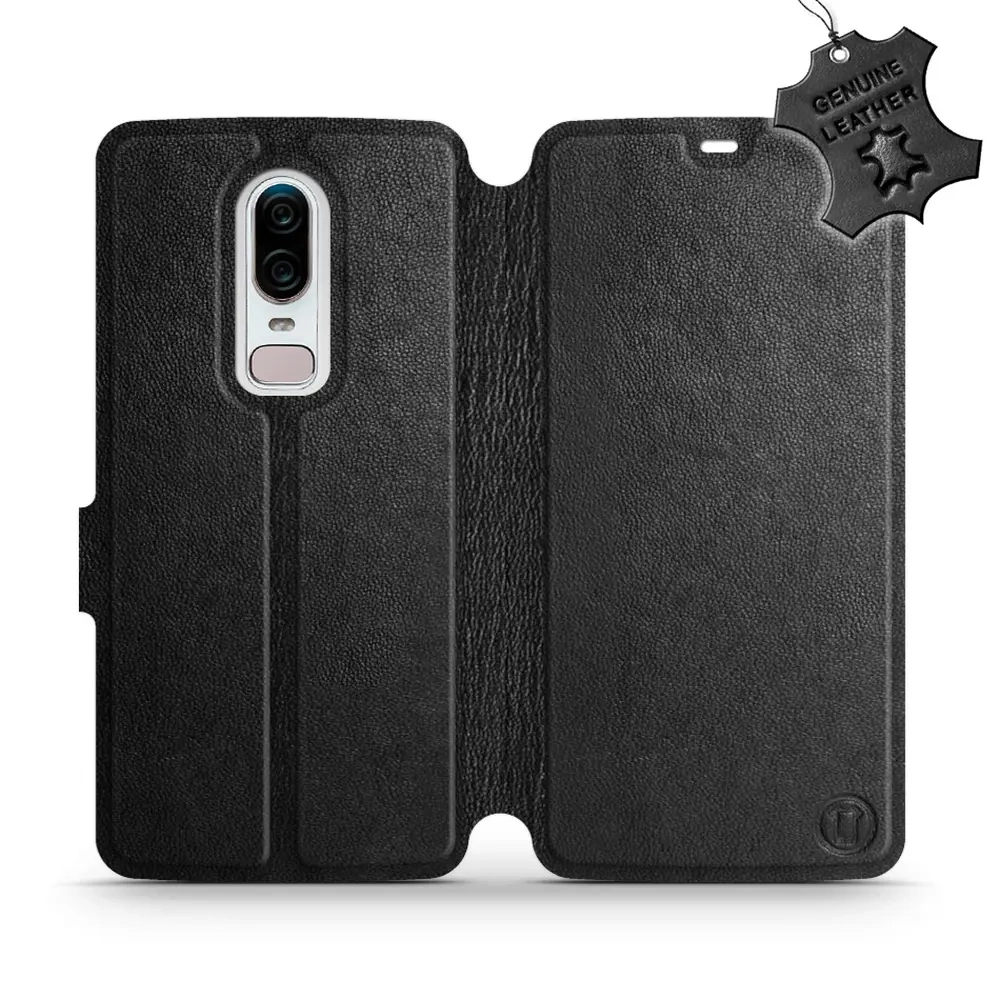 - Hülle mit Klappe von Mobiwear, hergestellt in Polen. Hülle für OnePlus 6 A6000 - Farbe Black Leather
